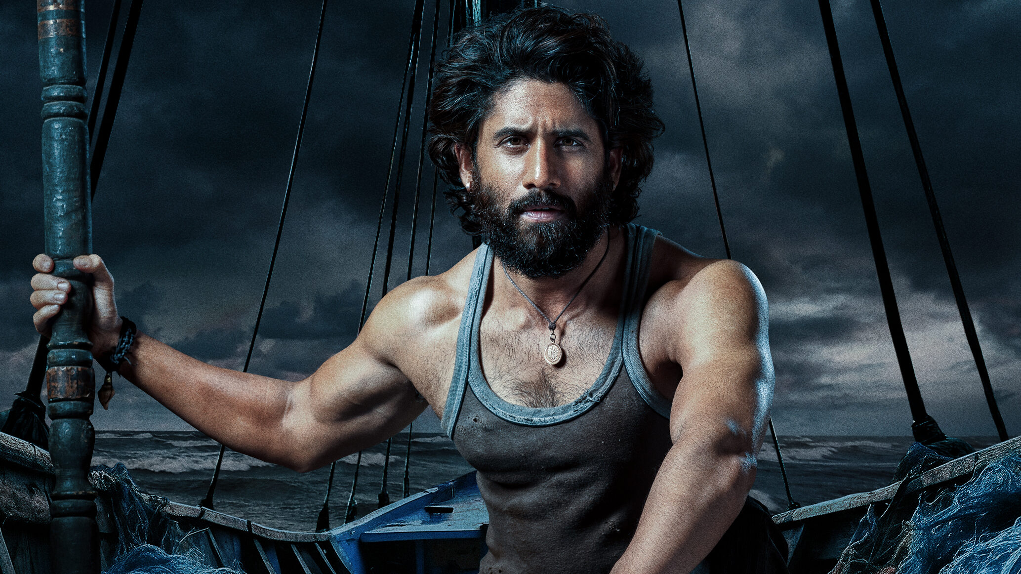 Naga Chaitanya switched to beast mode to play a fisherman in the movie and has undergone intense workouts for the last few months to gain this muscular look. He sports a rugged look with long hair and beard. Sitting on a boat with an oar in his hand, Naga Chaitanya is seen giving a stern gaze in the first-look poster flaunting his chiseled physique in a vest. The first look poster is as arresting as the title and it generates a lot of inquisitiveness for the movie, though it is yet to go on set.